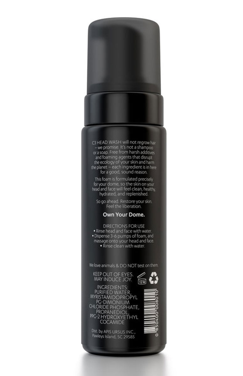 C3 Head Wash is designed for effective daily cleansing of your entire dome - head, face, neck, and beard (if you have one) so your skin will feel healthy, hydrated, and replenished.